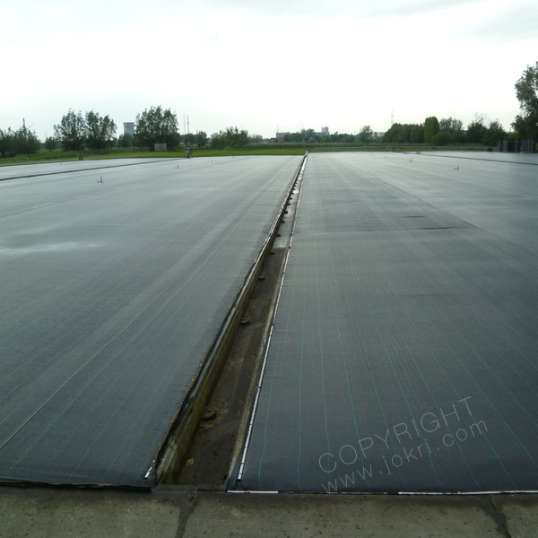 Voor sommige teelten is het aan te raden bovenaan de helling een vochtmat tussen folie en doek te plaatsen dit om het vocht langer onder de pot vast te houden